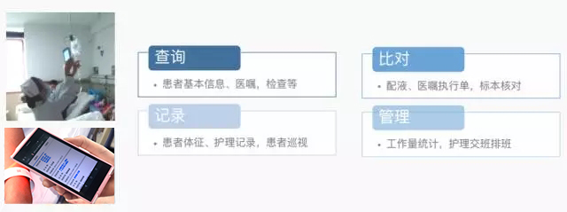 醫(yī)院的護士在日常操作中,每個環(huán)節(jié)都通過移動護士去記錄。在此過程中,移動護士會將護士的記錄工作,加上一些系統(tǒng)限制。如護士檢查患者的輸液信息,現(xiàn)階段大多是通過人工去核對,而使用移動護士,可以直接掃碼核對。同時,移動護士會強制要求患者的輸液瓶簽和患者腕帶之間一一對應(yīng),這就相當(dāng)于增加了一個自動化的識別判斷,讓更換過程又快又準(zhǔn)。