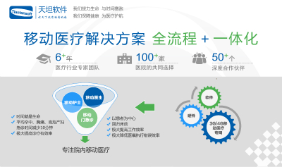 除了卒中綠色通道之外,天坦軟件在大會上還展出了移動醫(yī)護(hù)產(chǎn)品,主要涉及天坦移動醫(yī)生和天坦移動護(hù)士。天坦移動醫(yī)生是專門為醫(yī)生定制的移動查房系統(tǒng),具有智能查房,協(xié)同醫(yī)療、智能輔助等特點(diǎn),是隨時隨地的病歷夾;天坦移動護(hù)士是專門為護(hù)士定制的移動護(hù)理系統(tǒng),支持全程條碼信息核對,臨床信息移動化錄入,隨時隨地信息查詢以及護(hù)理管理等。