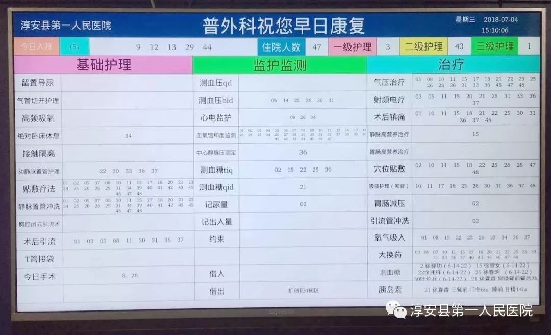 病房護(hù)理白板由原來的黑板手寫改為現(xiàn)在的信息化電子屏幕顯示,更直觀更便捷。